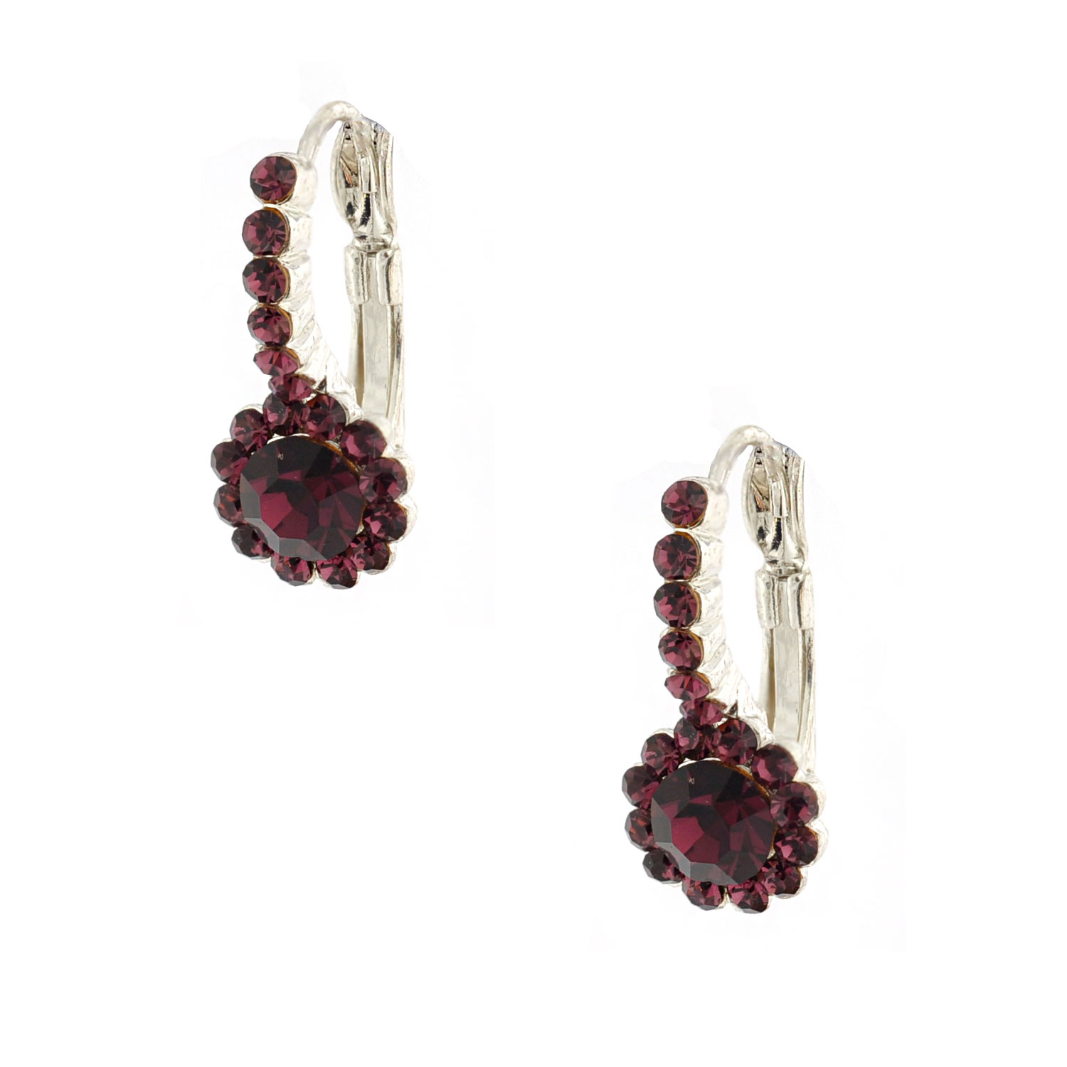 Wedding Jewelry Silver Plated Amethyst Hoop Dangle Round Stud Earrings