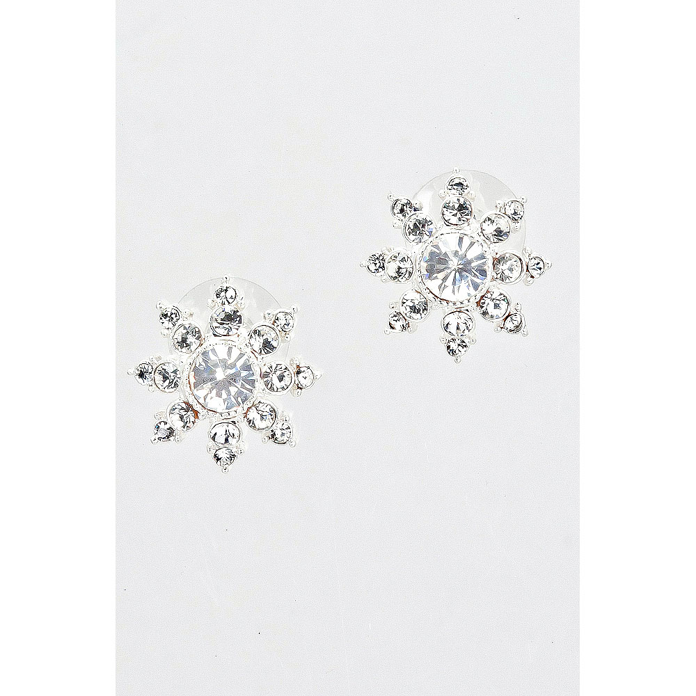 Silver Crystal Sun Stud Earrings
