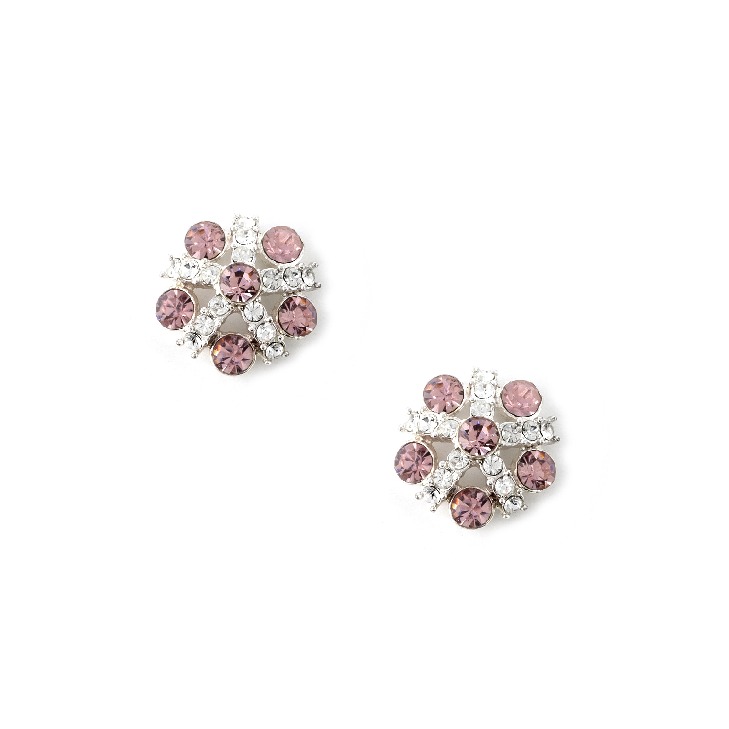 Silver Crystal Flower Shaped Rhinestone with Light Amethyst Petals Stud Earrings