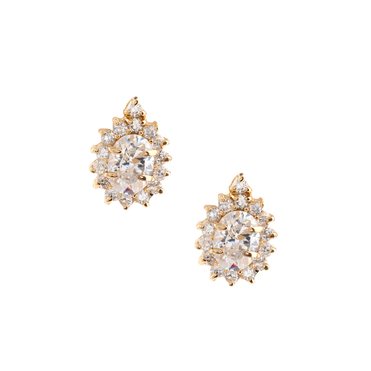 Gold Crystal Cubic Zirconia Teardrop Pear Shape Stud Earrings