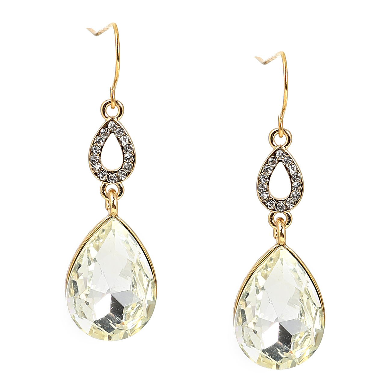 Silver Crystal Rhinestone in Teardrop Shape with Large Crystal Teardrop Dangle Stone Earrings
