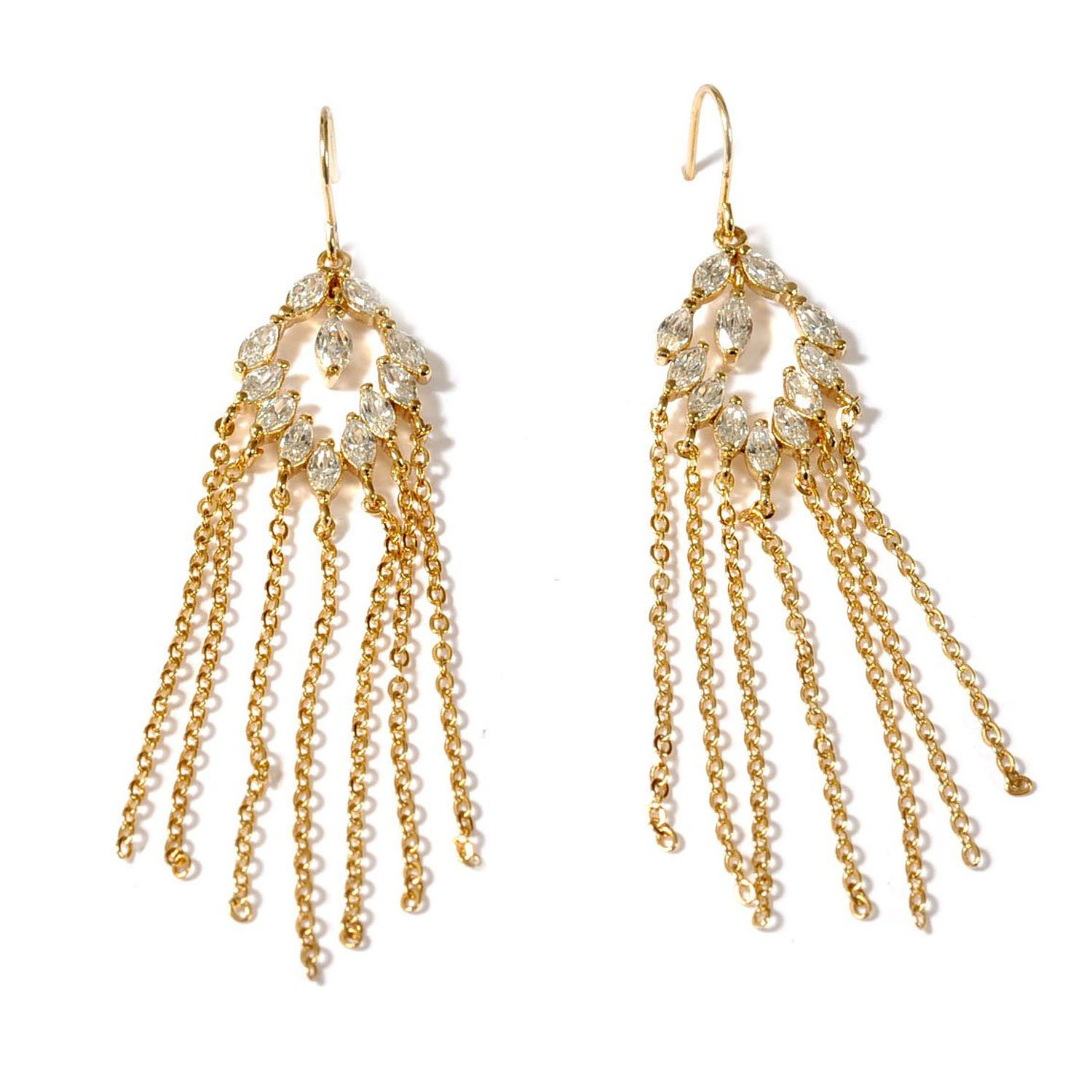 Gold Crystal 75mm Diamond Shape Cubic Zirconia Dangle Earrings
