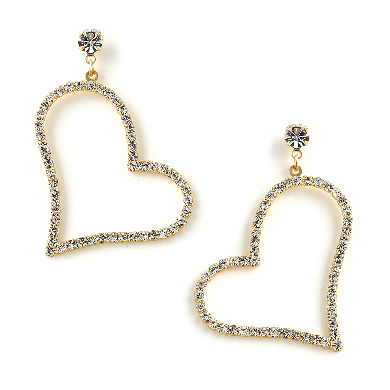 Gold Crystal Heart Earrings