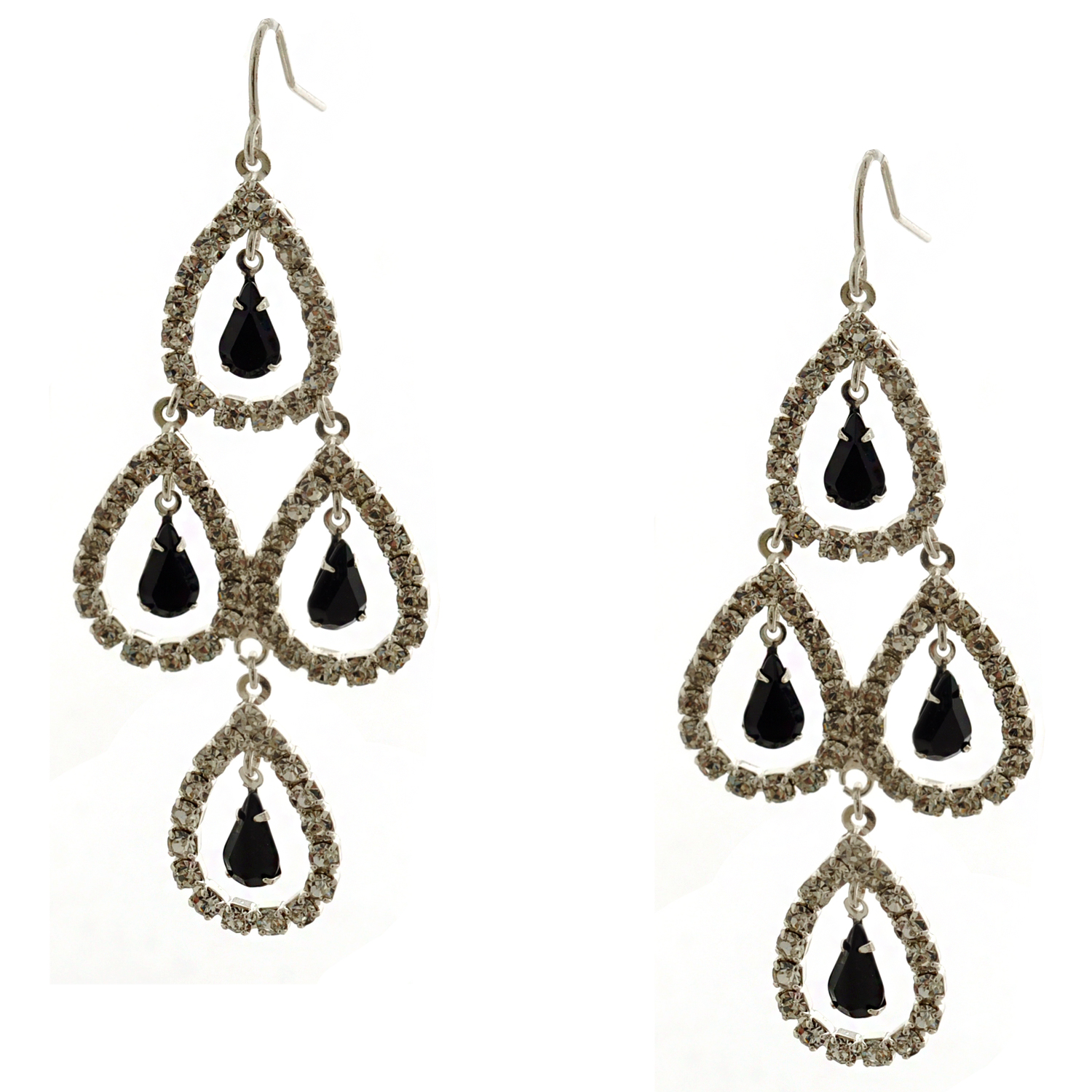 Womens Earrings Silver Jet Rhinestone Chandelier Hook Dangle Earrings