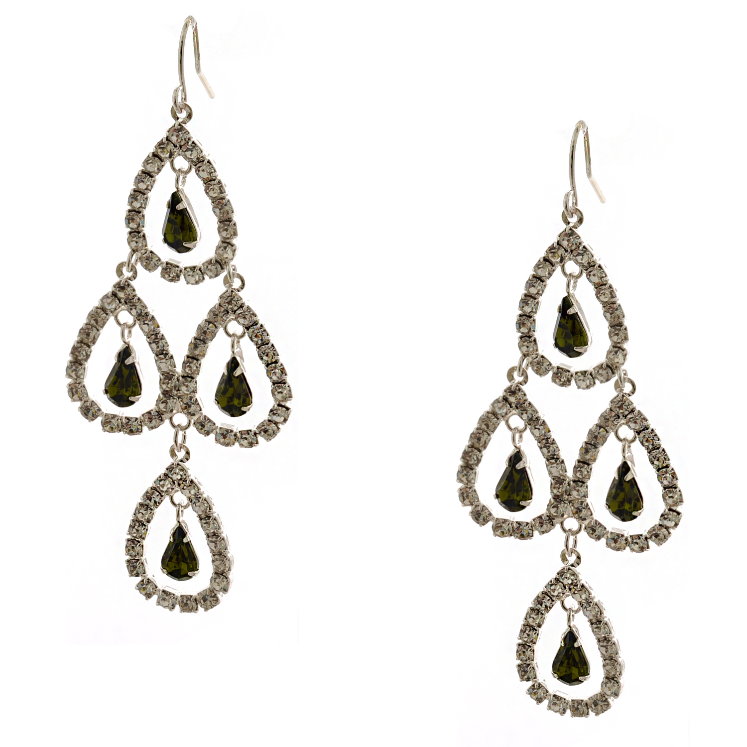 Silver Olive Rhinestone Chandelier Hook Dangle Earrings