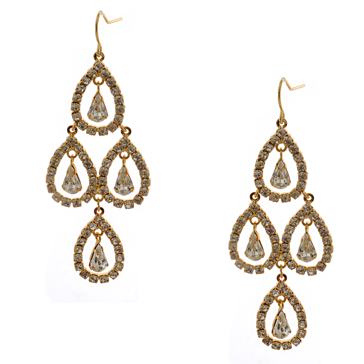 Gold Crystal Rhinestone Chandelier Hook Dangle Earrings
