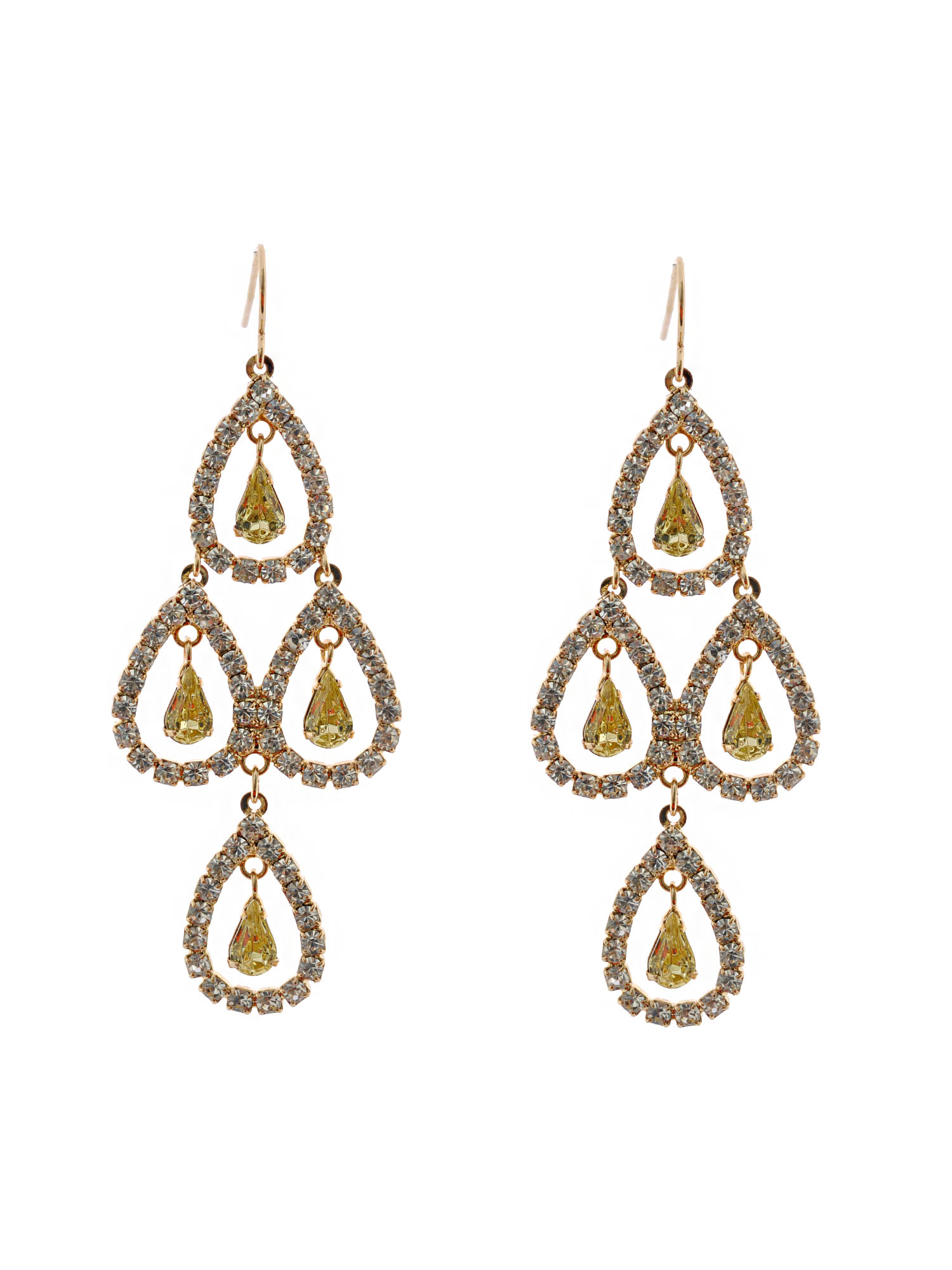Fashion Jewelry Gold Plating Jonquil Rhinestone Chandelier Hook Dangle Earrings