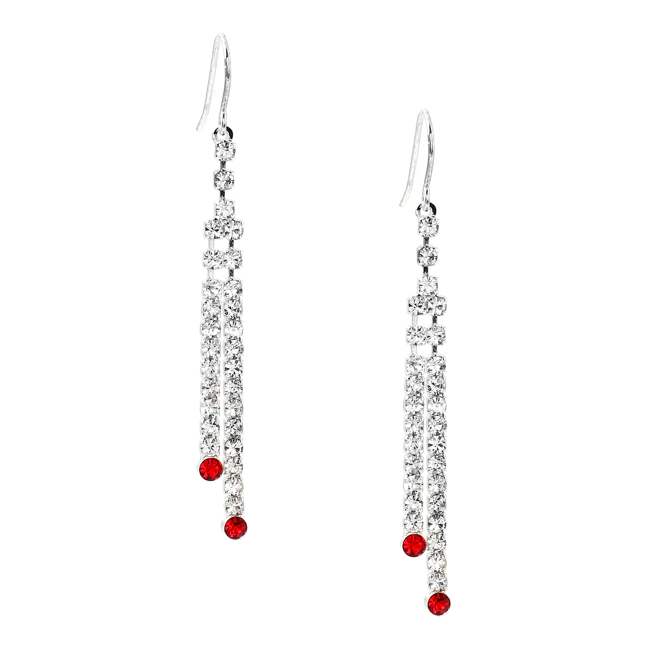 Silver Crystal Rhinestone 2 Dangle Lines with Light Siam Ends Wire Earrings
