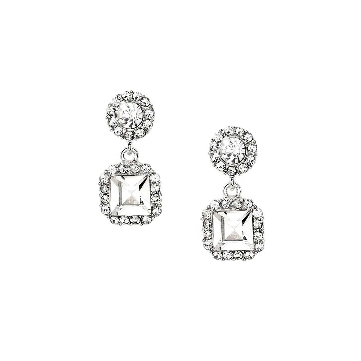 Silver Crystal Rhinestone Diamond Shape Drop Earrings
