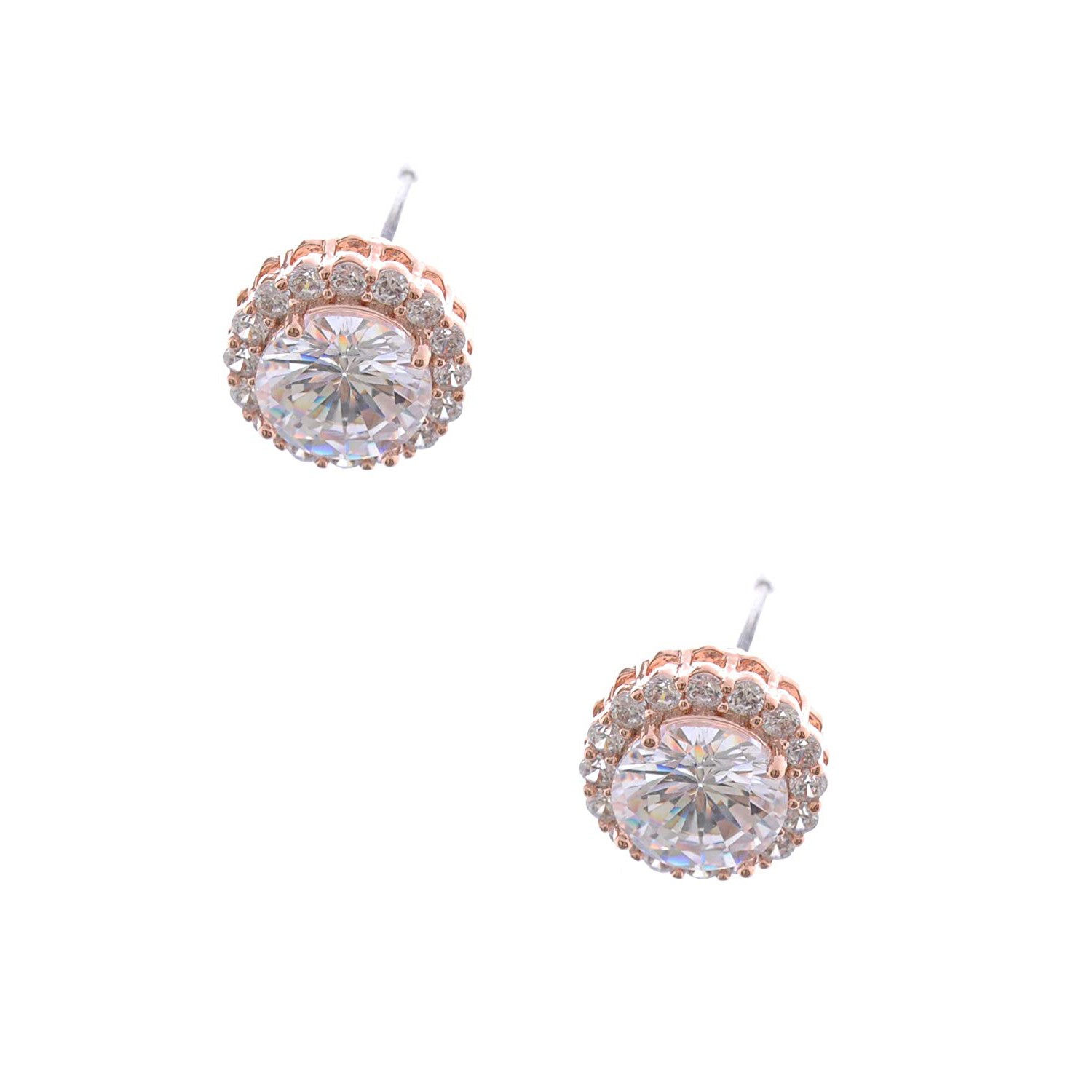 Rose Gold Plating Crystal Cubic Zirconia Flower Stud Earrings