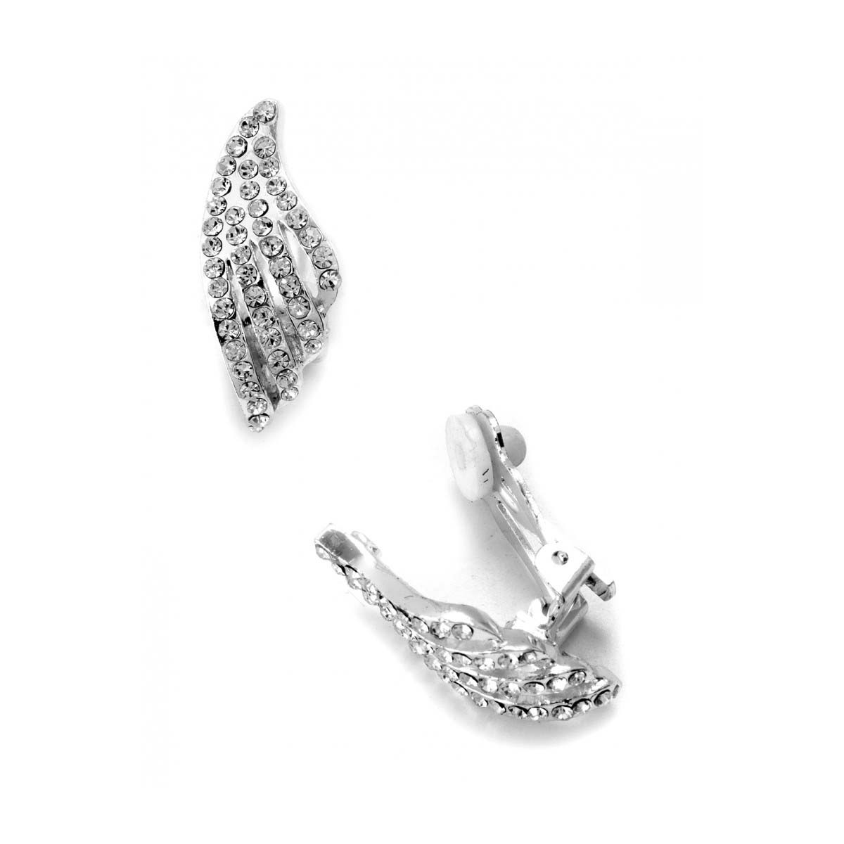 Silver Crystal Rhinestone Wave Shaped Clip Earrings