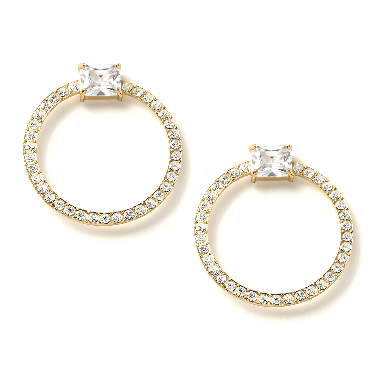 Gold Crystal 50mm Hoop Ring Shape Rectangle Cubic Zirconia Center Piece Drop Earrings