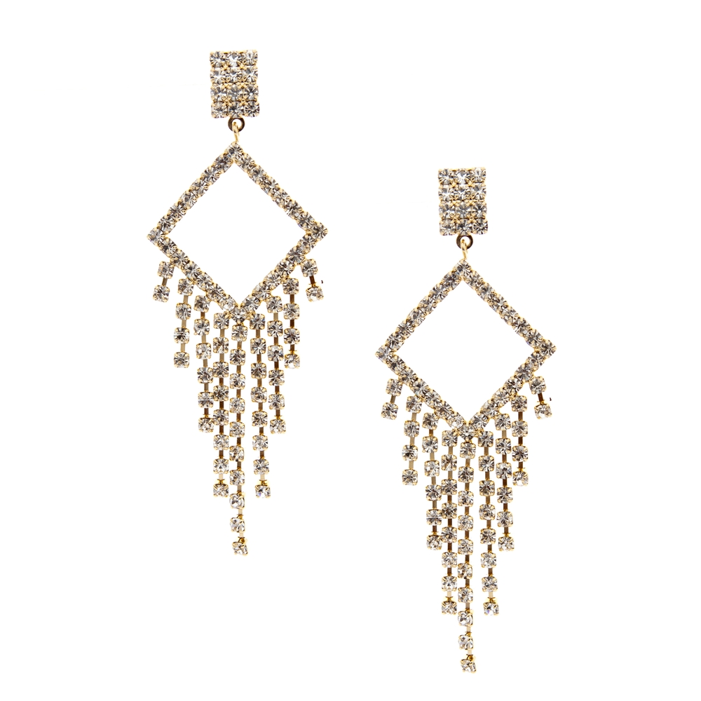 Gold Crystal Diamond Shape Dangle Earrings