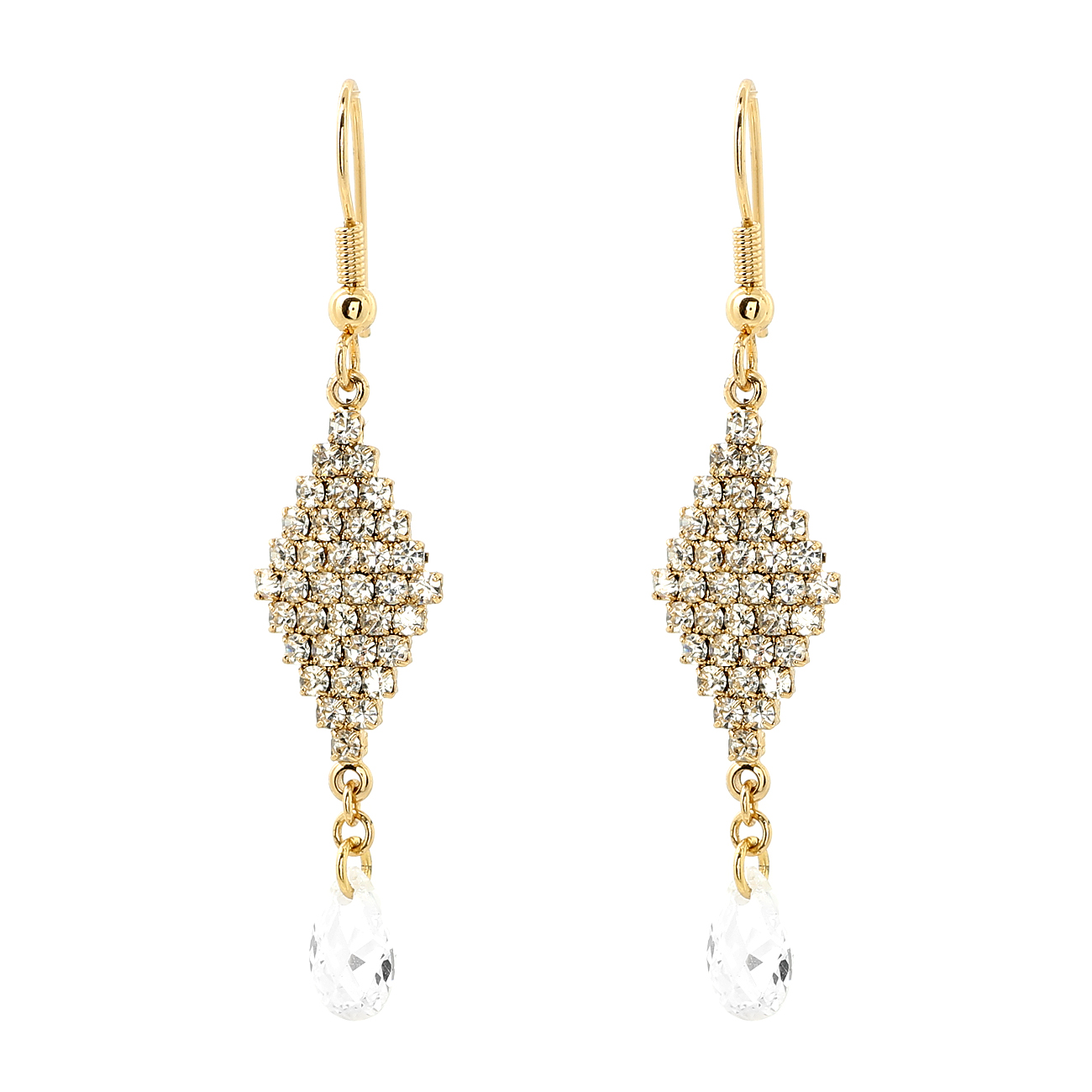 Wedding Earrings Gold Crystal Oval Stone Dangle Wire Earrings