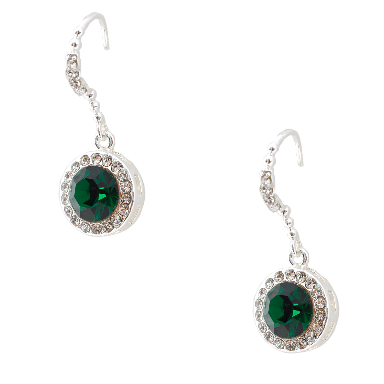 Bridal Earrings Silver Emerald Rhinestone Round Earrings For Wedding