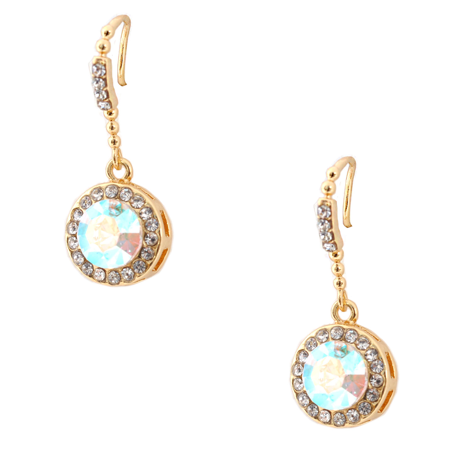 Bridal Earrings Gold Aurora Borealis Rhinestone Round Earrings For Wedding