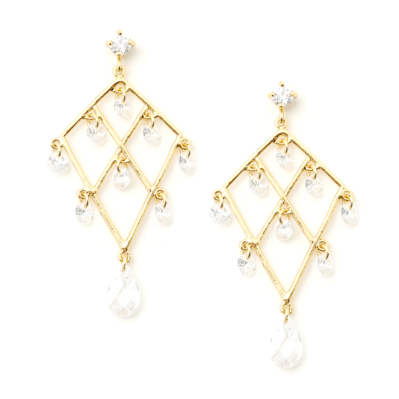 Gold Diamond Shapes with Dangle Crystal Cubic Zirconia Earrings