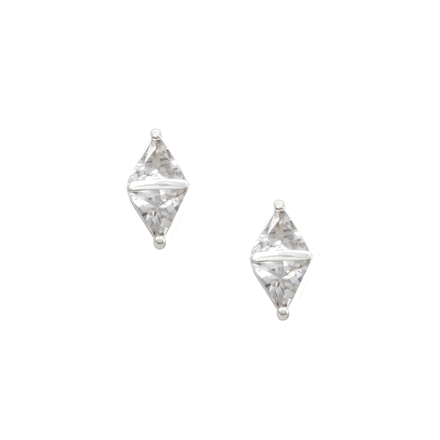 Silver Crystal Cubic Zirconia 15mm Double Triangle Bezel Stud Earrings