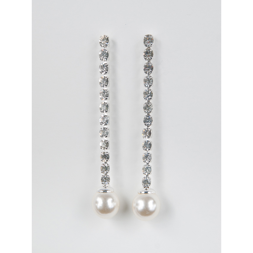 Silver White Pearl Long Earring