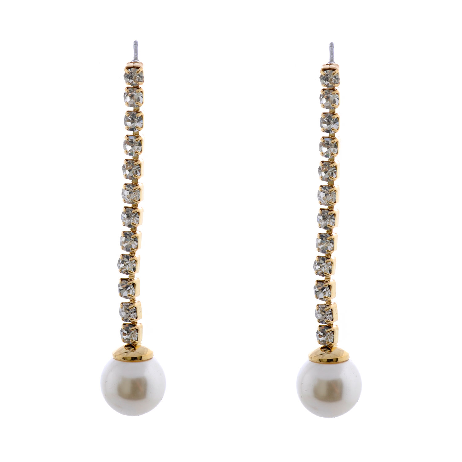 Wedding Earrings Gold Crystal Pearl Long Teardrop Earrings