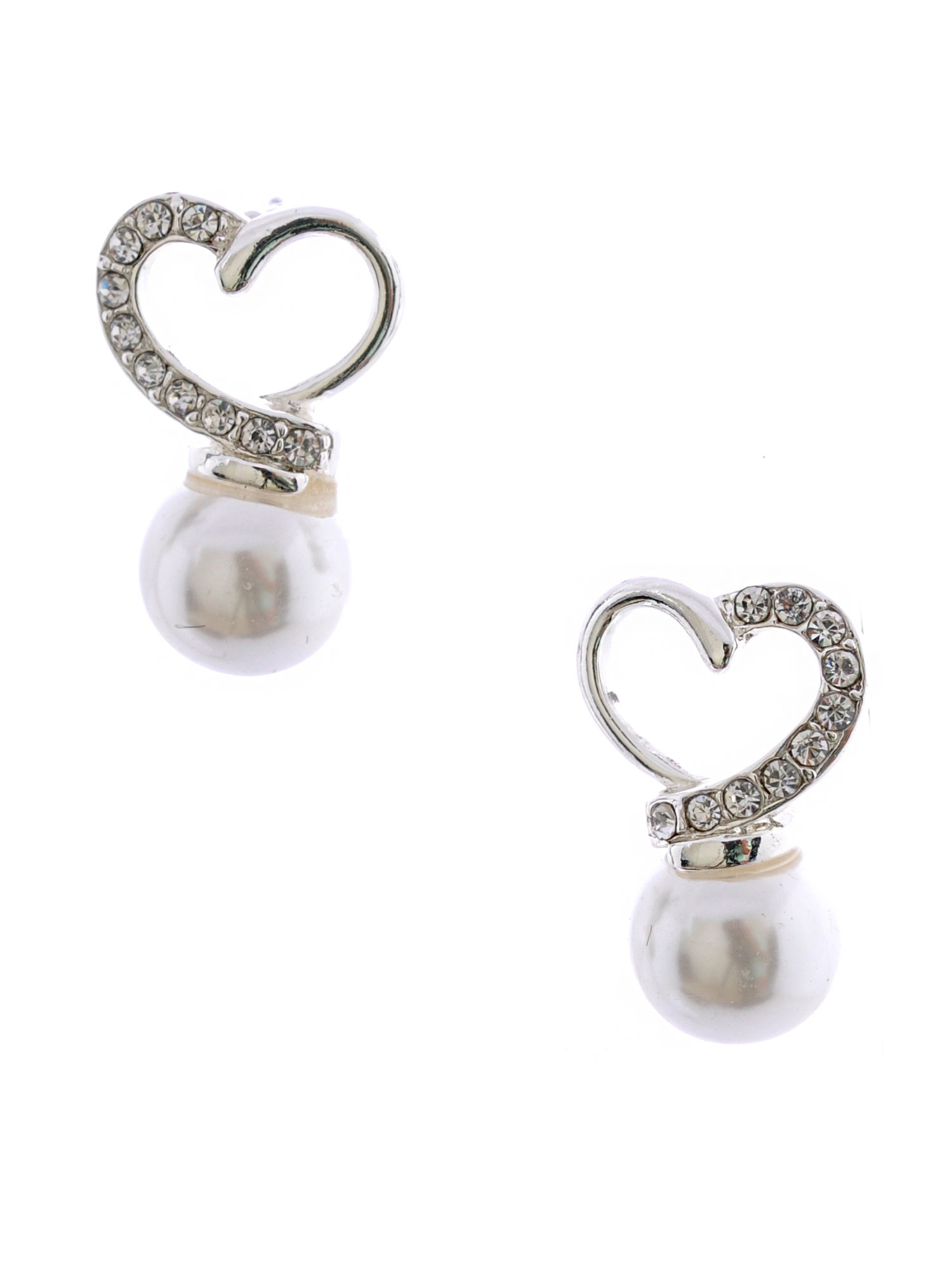 Silver Plating Faux Pearl Heart Shape Earrings