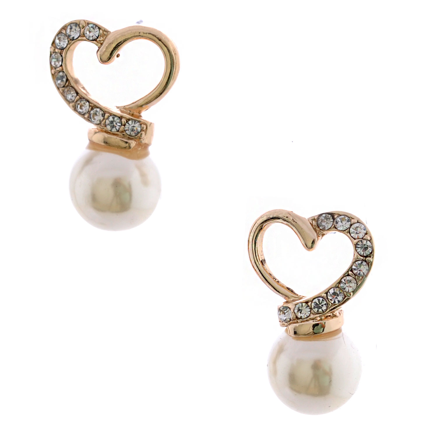 Gold Plating Faux Pearl Heart Shape Earrings