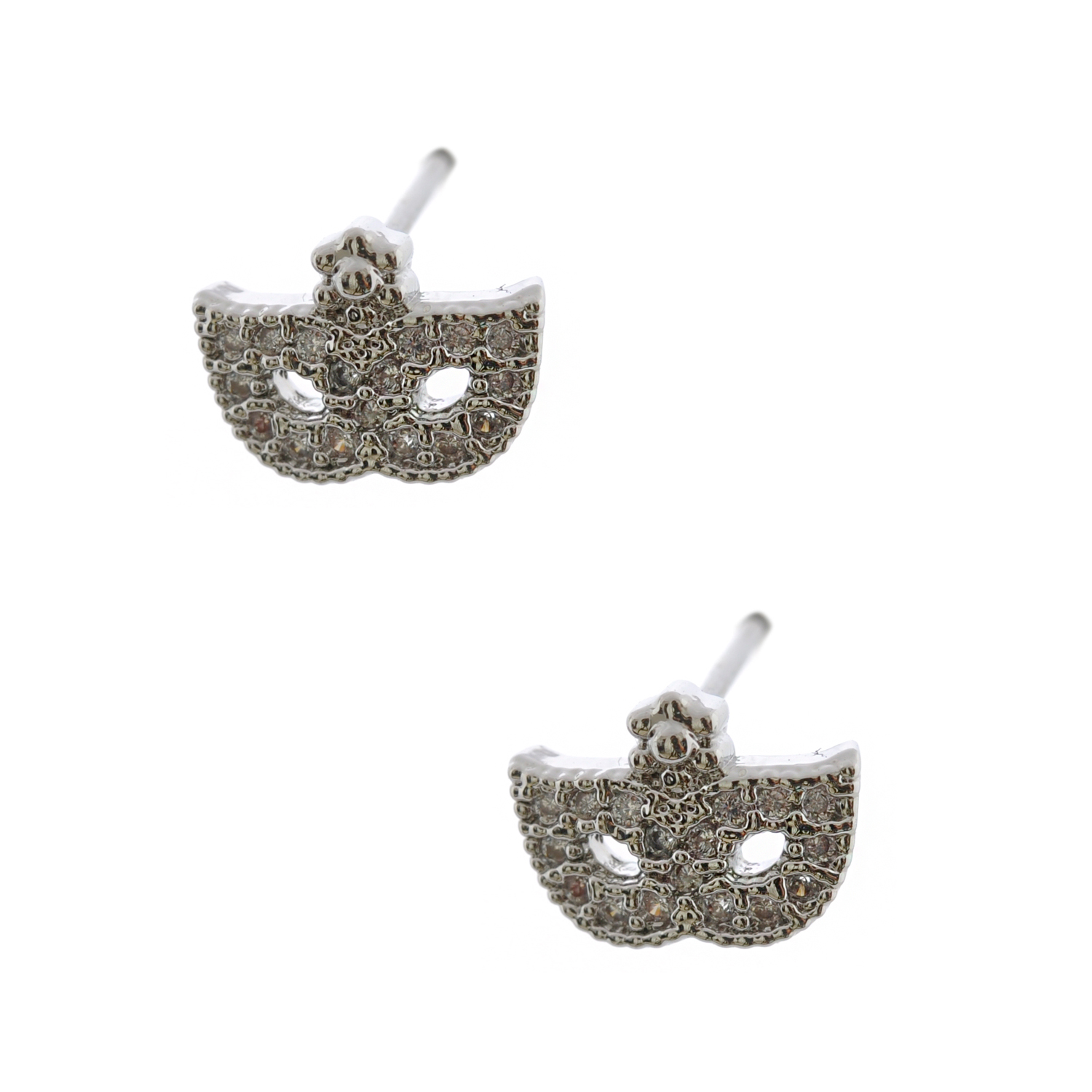 Silver Plating Crystal Cubic Zirconia Small Mask Stud Earrings