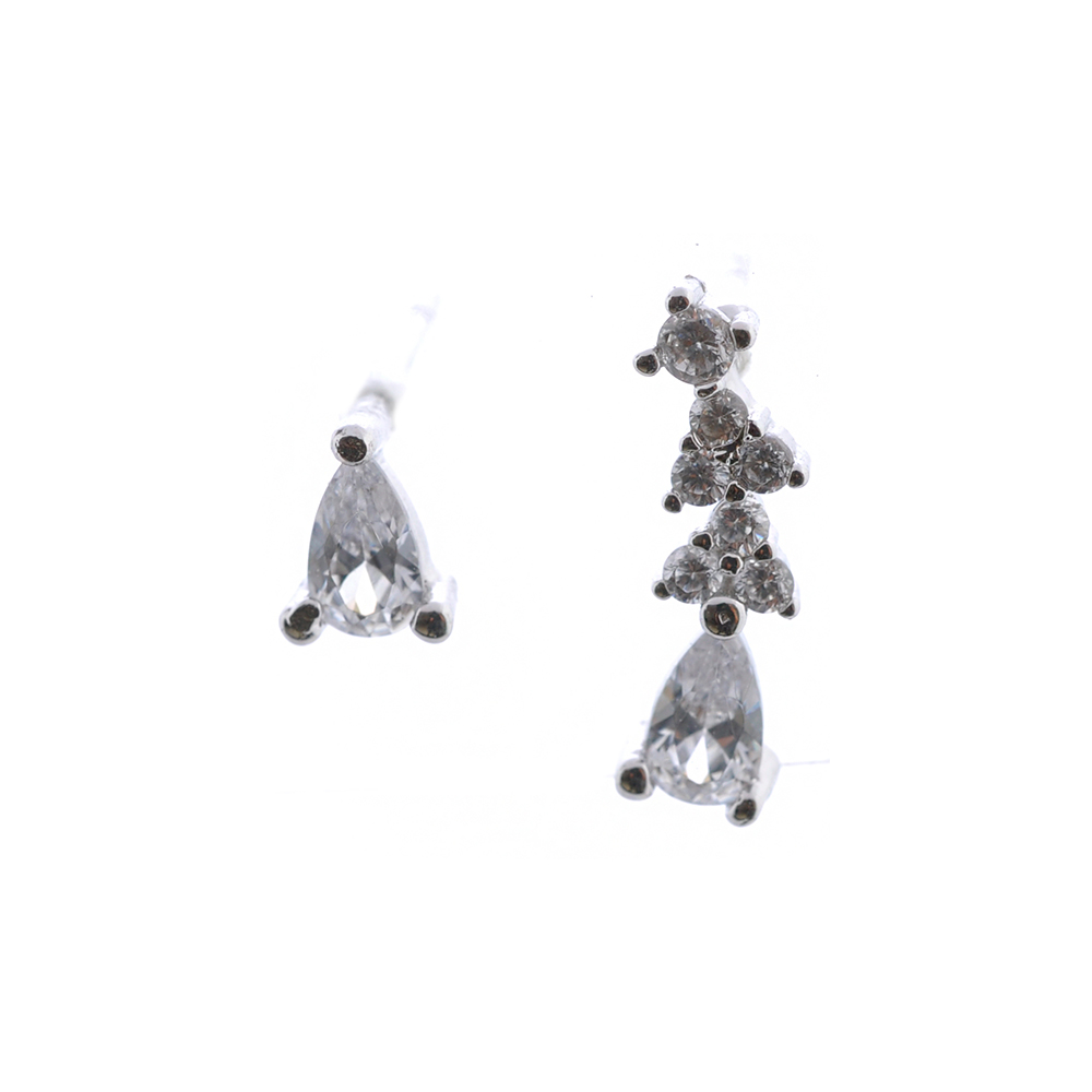 Silver Plating Cuff Tear Cubic Zirconia Stud Earrings