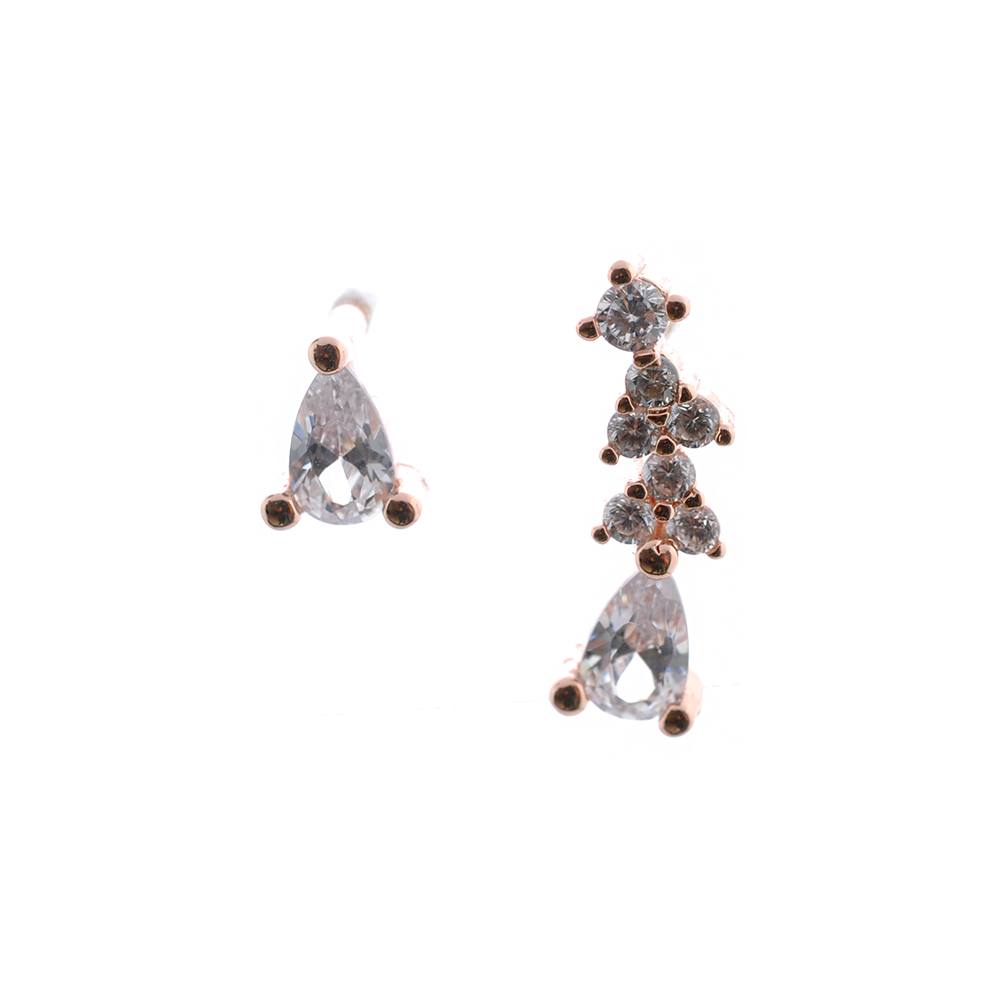Rose Gold Plating Cuff Tear Cubic Zirconia Stud Earrings