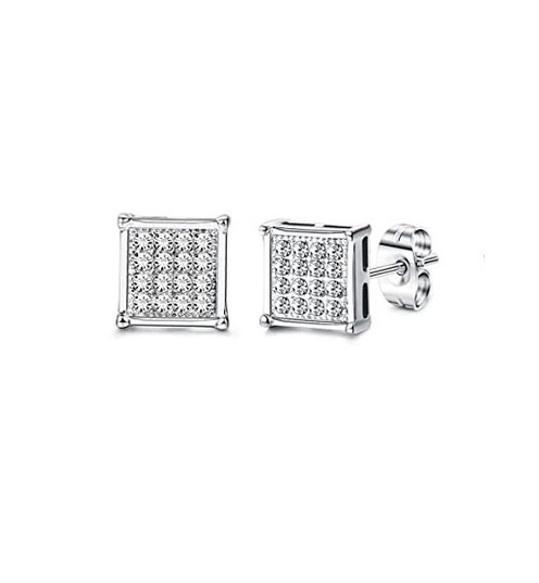 Silver-Tone Square Cubic Zirconia Stud Earrings Approx. 10mm