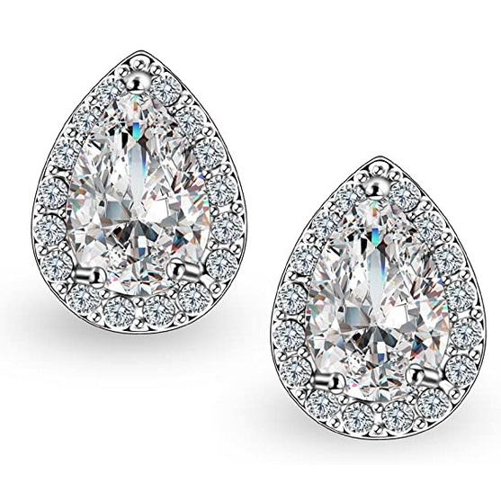 Silver Plating Teardrop Approx. 14mmHalo Stud Cubic Zirconia Earrings