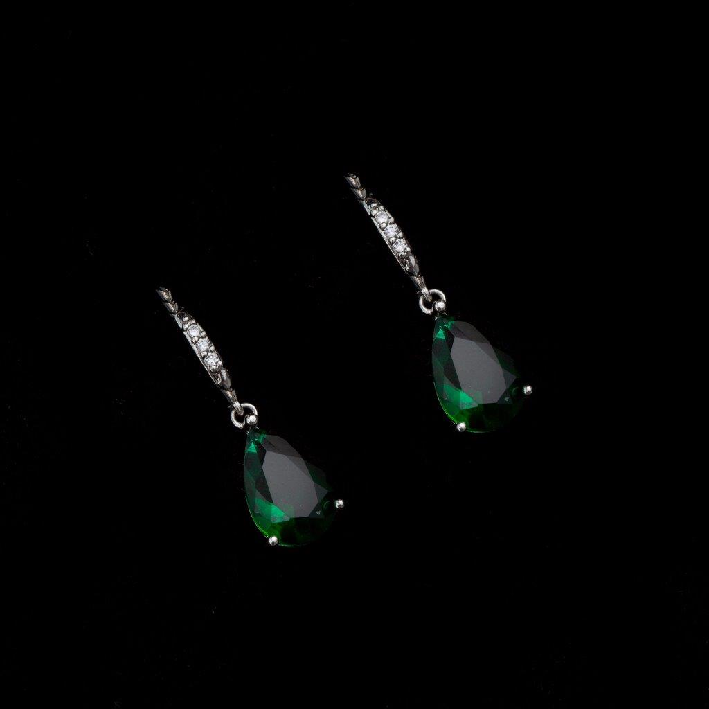 Introducing our stunning Silver Emerald Green Cubic Zirconia Teardrop 1in Fashion Jewelry Earrings! These earrings are the epitome of elegance and sophistication, combining the timeless beauty of silver with the vibrant allure of emerald green cubic zirconia.