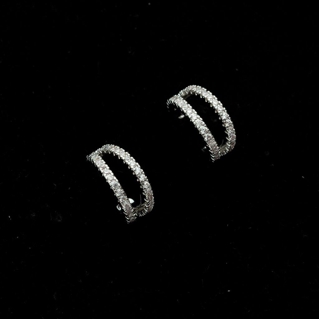 Crafted with precision and attention to detail, these silver crystal semi hoop earrings are designed to turn heads wherever you go. The silver setting beautifully complements the sparkling crystals, creating a mesmerizing symphony of style. Oh, did we mention the dazzling rhinestones? They add that extra touch of glamour, making you feel like a true fashionista.