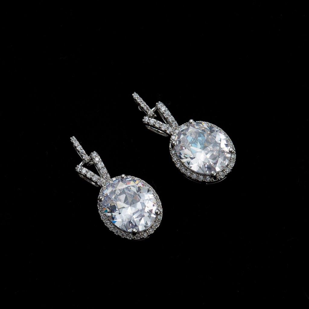 Introducing our dazzling Silver Crystal Cubic Zirconia Oval Earrings! These exquisite pieces will instantly elevate your accessory game and make you the envy of all your friends.