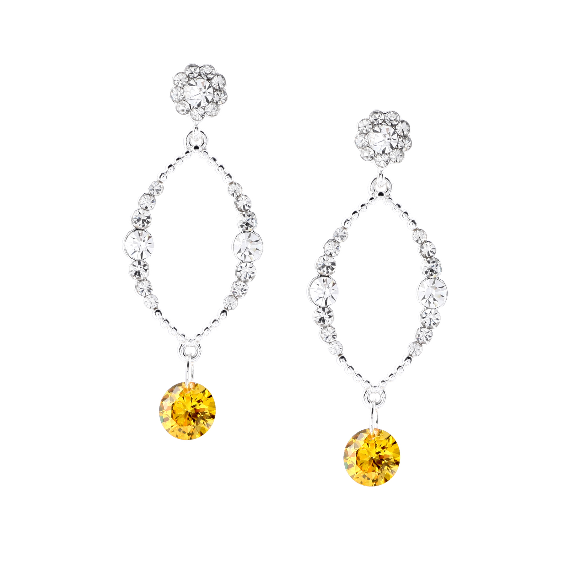 Silver Crystal Rhinestone Oval Dangle Earrings with Round Shaped Light Colorado Topaz Stone Accent