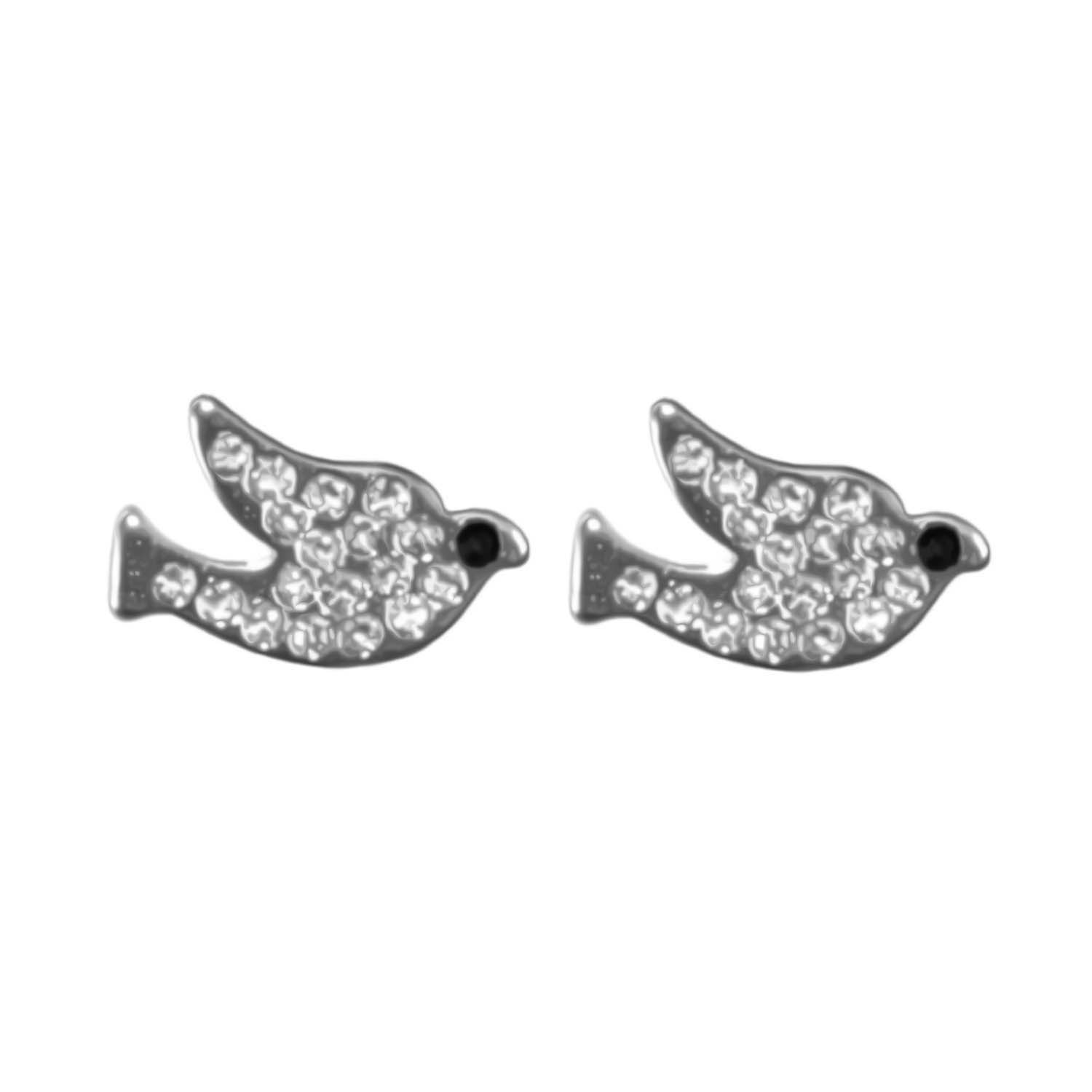Wedding Earrings Silver Crystal Bird Stud Earrings