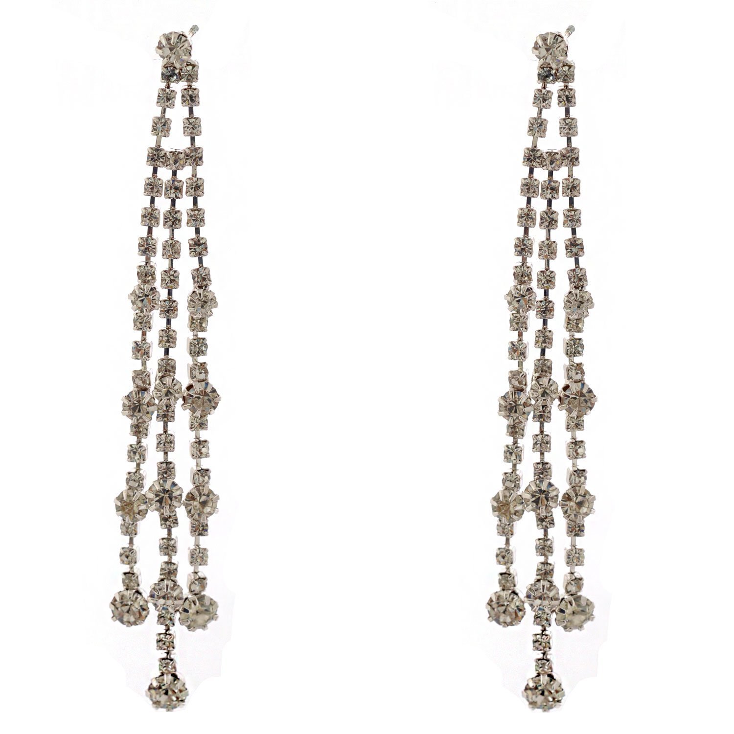 Bridal Jewelry Silver Crystal Rhinestone Threaded Earrings
