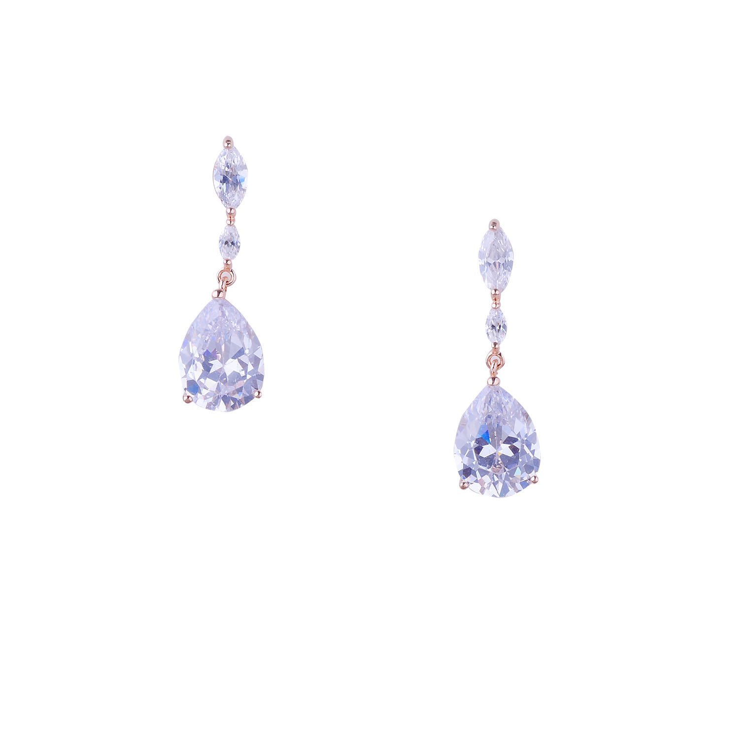Rose Gold Crystal Cubic Zirconia Big Teardrop Earrings