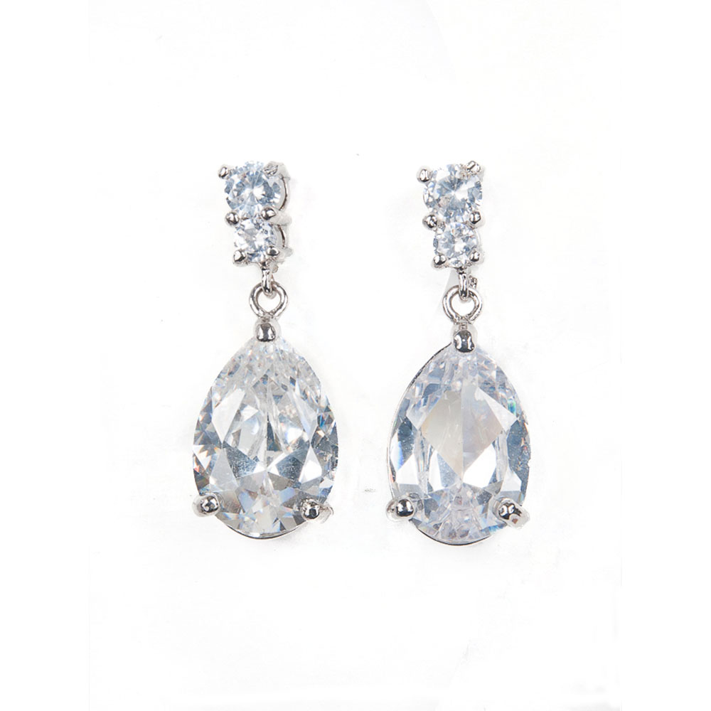 Rhodium Crystal Cubic Zirconia Teardrop Earrings
