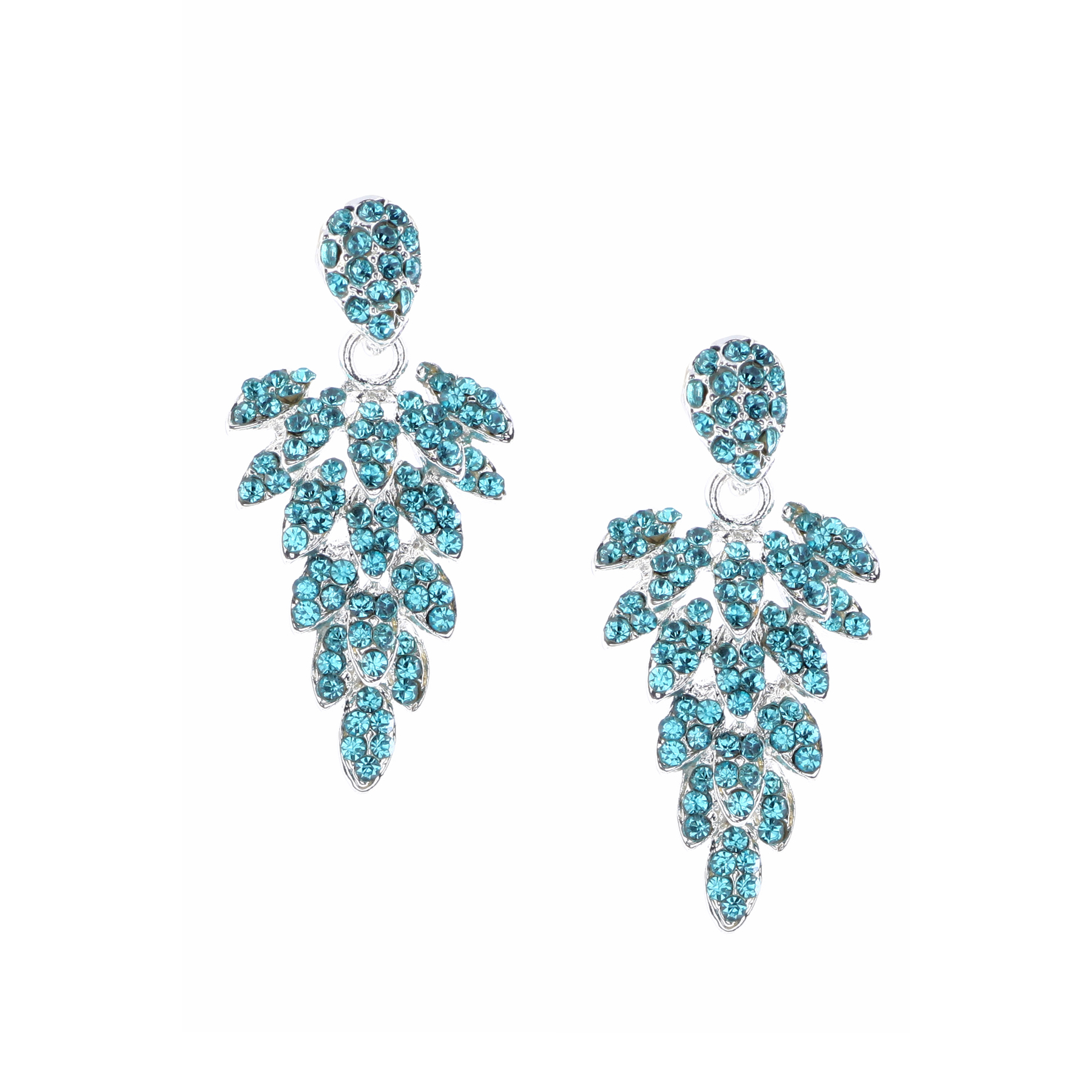 Silver Aqua Rhinestone Leaf Shaped Dangle Earrings