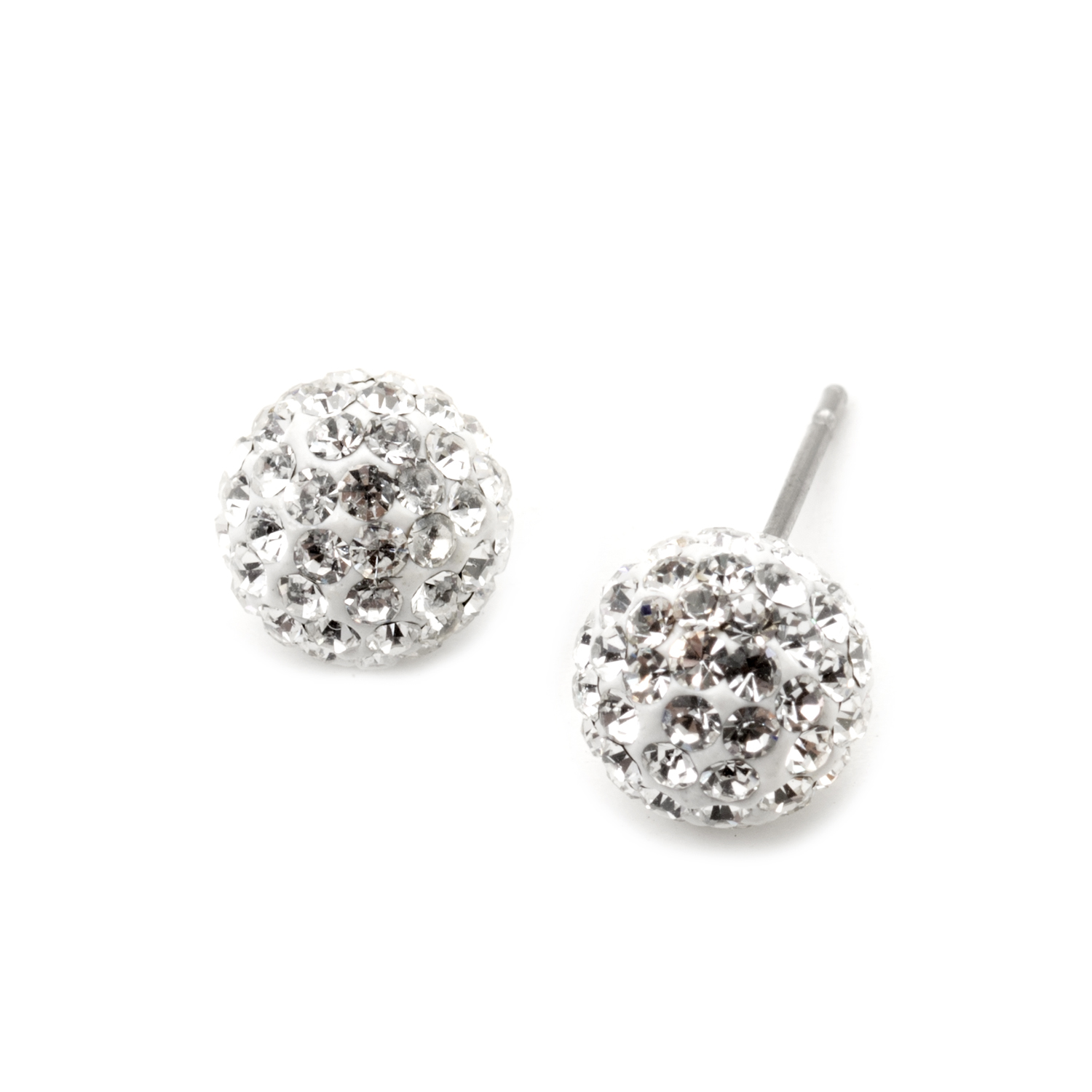 Silver Crystal Rhinestone 8mm Ball Shape Stud Earrings