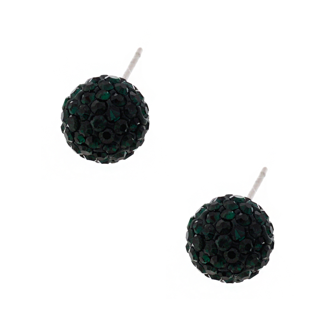 Wedding Earrings Silver Emerald Green Rhinestone 8mm Ball Shape Stud Earrings