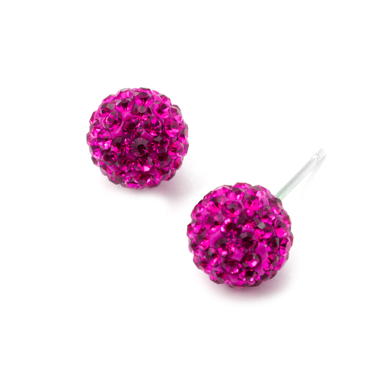 Silver Fuchsia Rhinestone 8mm Ball Shape Stud Earrings