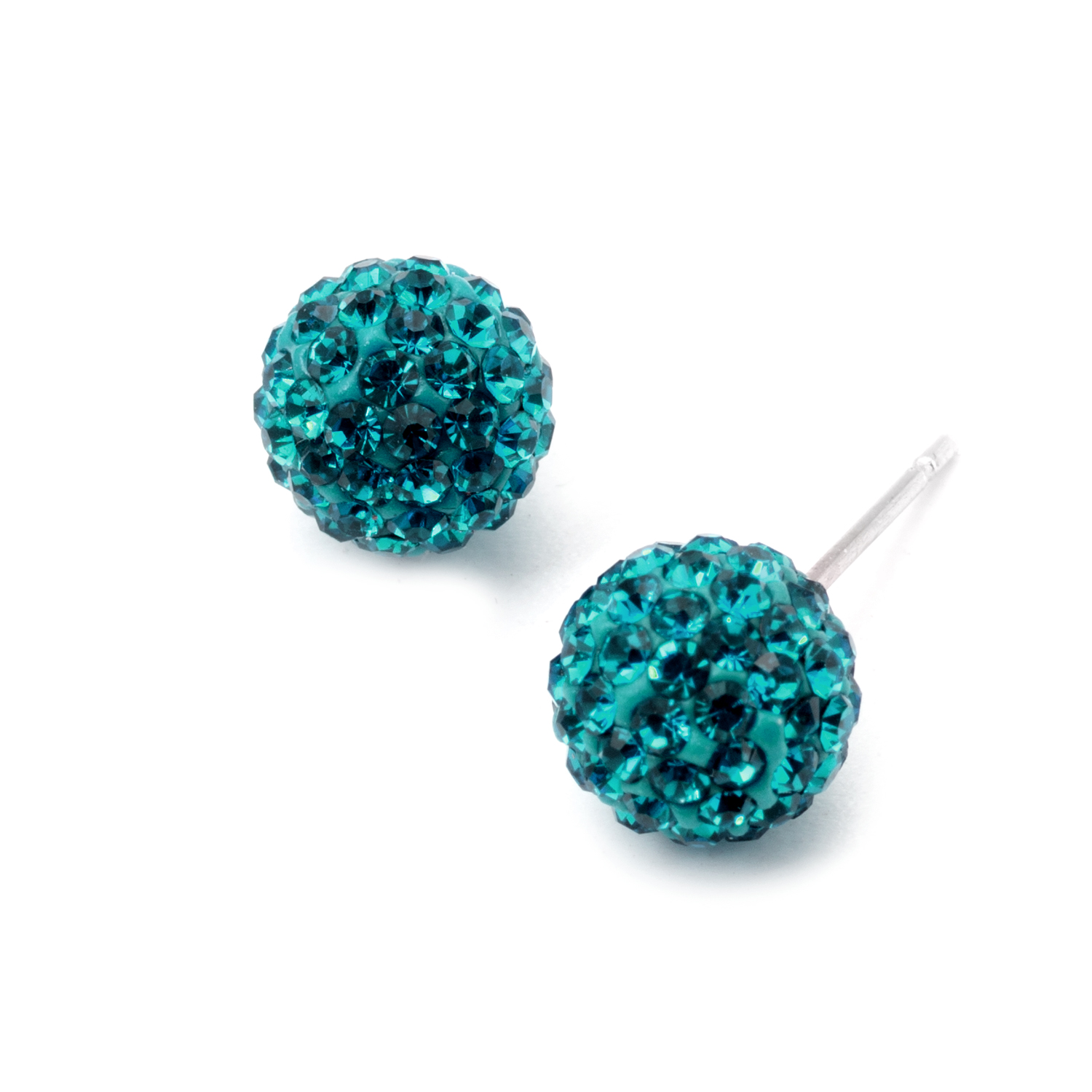 Silver Blue Zircon Rhinestone 8mm Ball Shape Stud Earrings