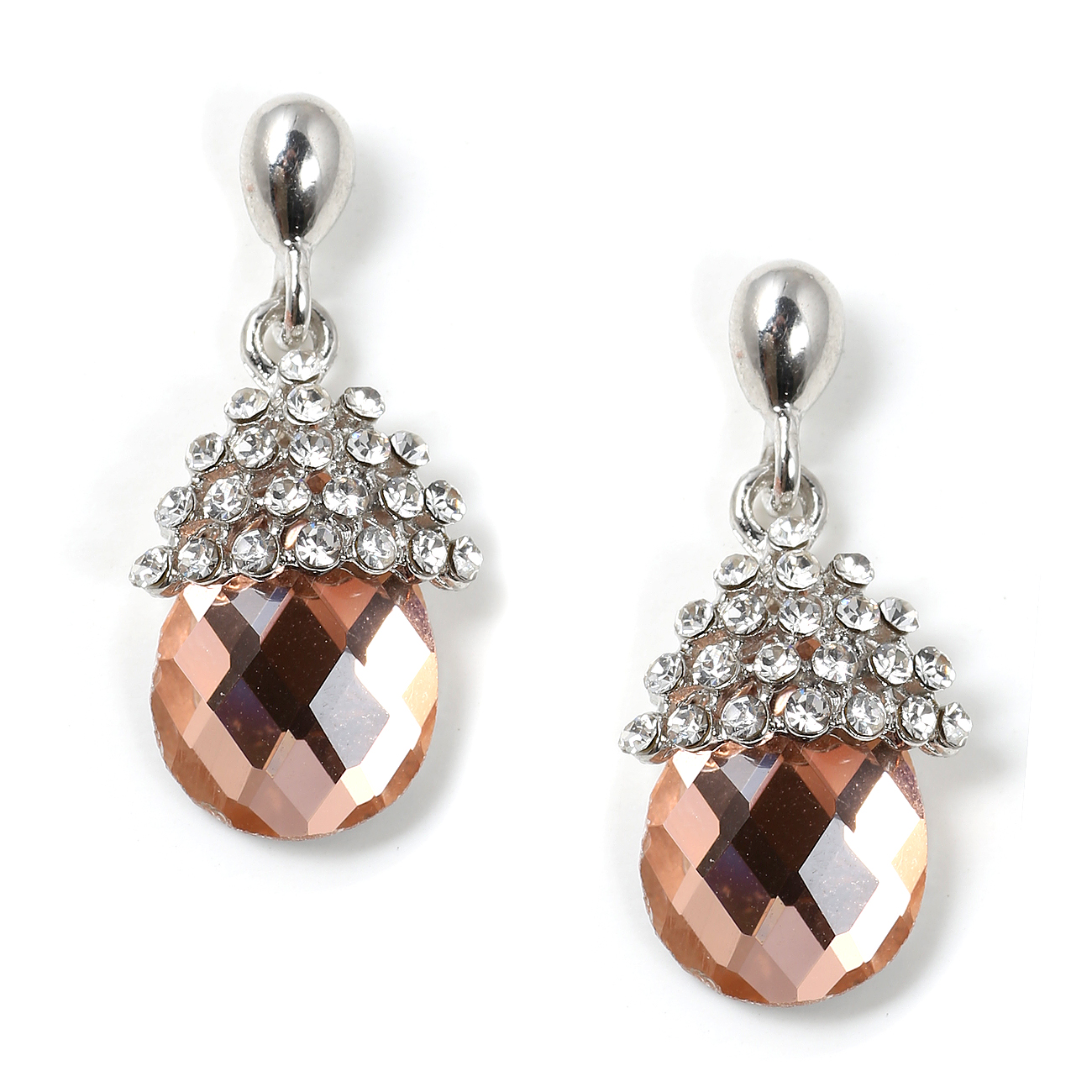 Rhodium Crystal Stone in Cone Shape with Large Light Peach Stone Earrings