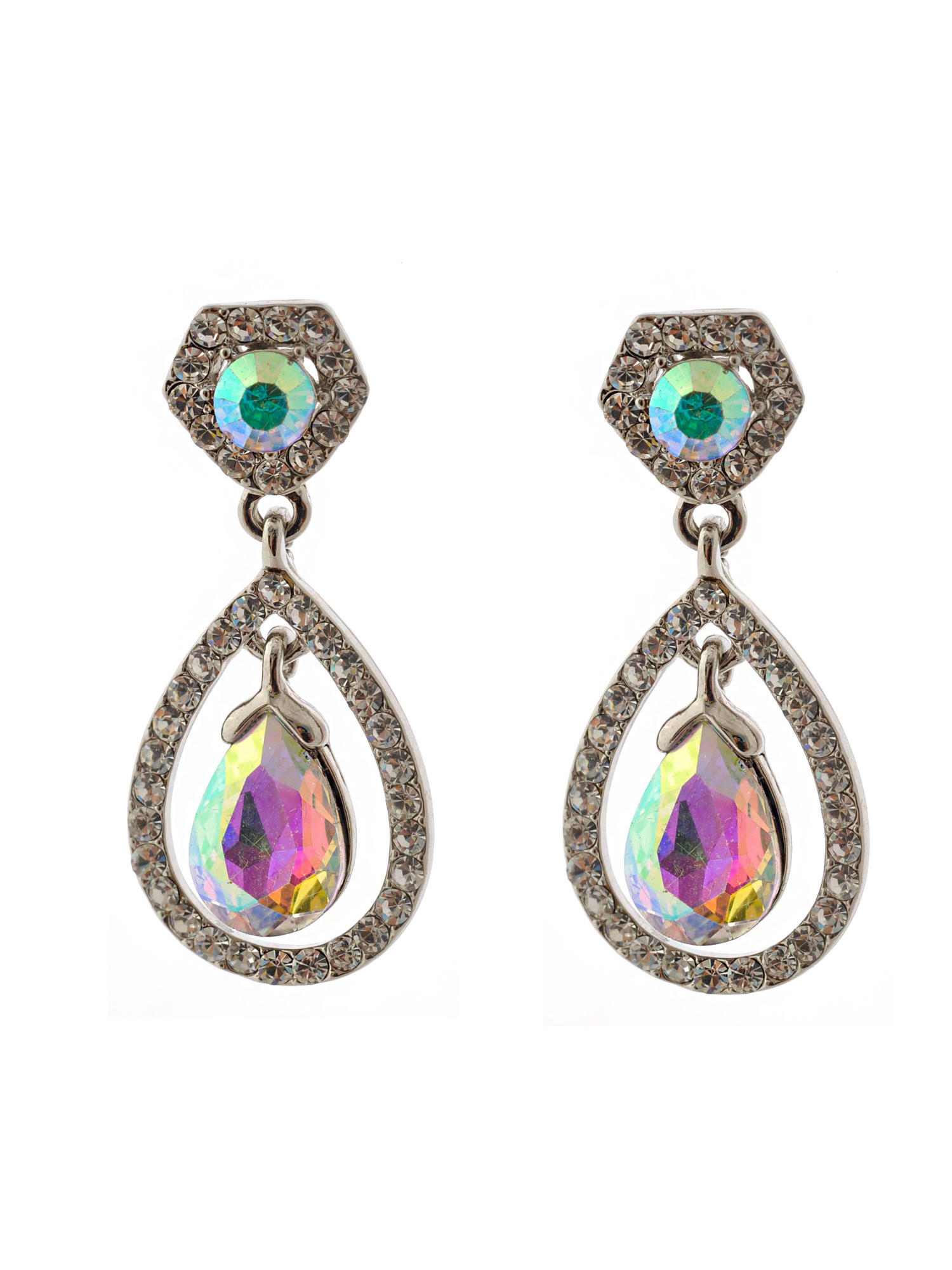 Topwhoesalejewel Rhodium RhinestoneTeardrop Dangle Aurora Borealis Stone Earrings