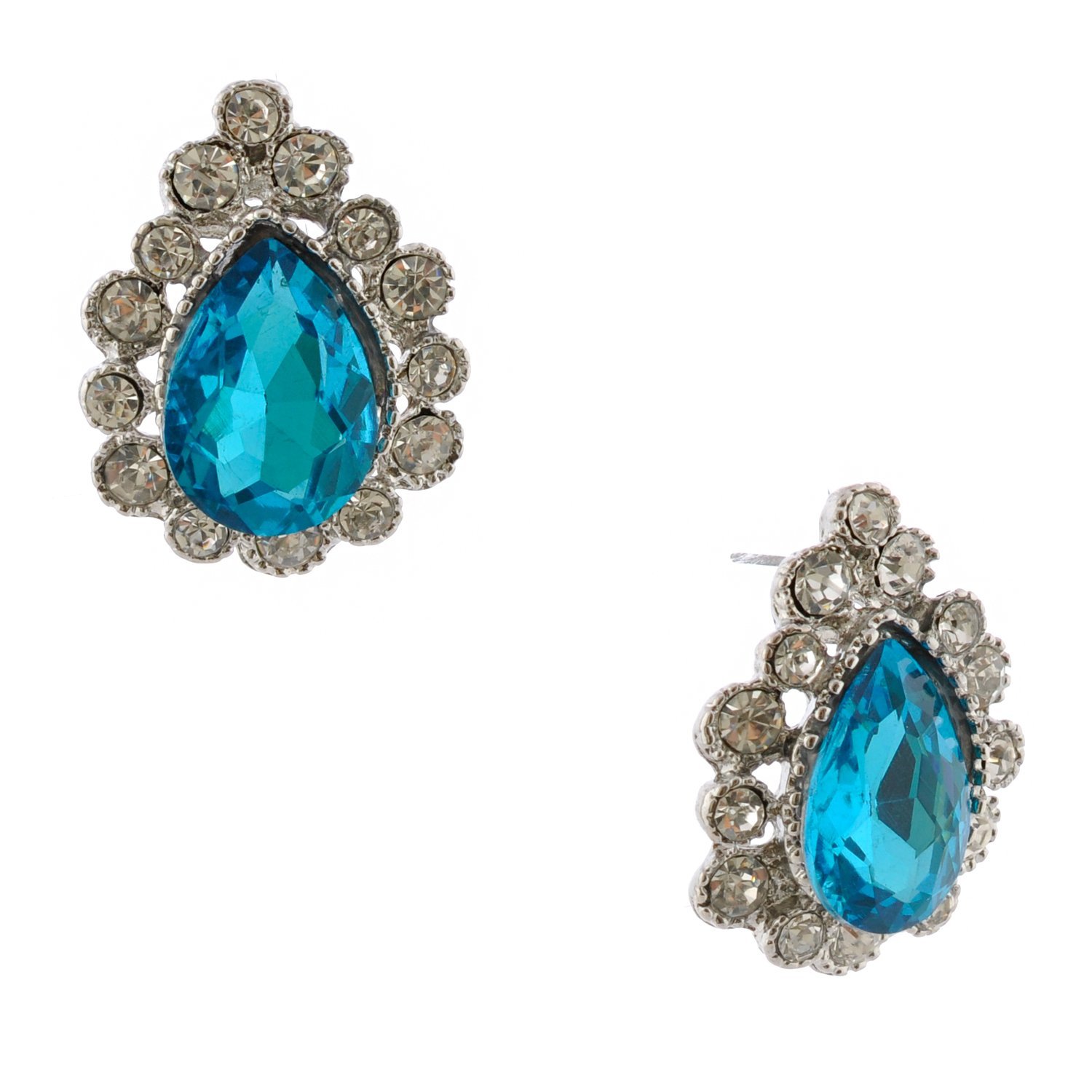 Silver Teardrop Shape with Crystal Stones Around a Large Teardrop Aqua Stone Earrings