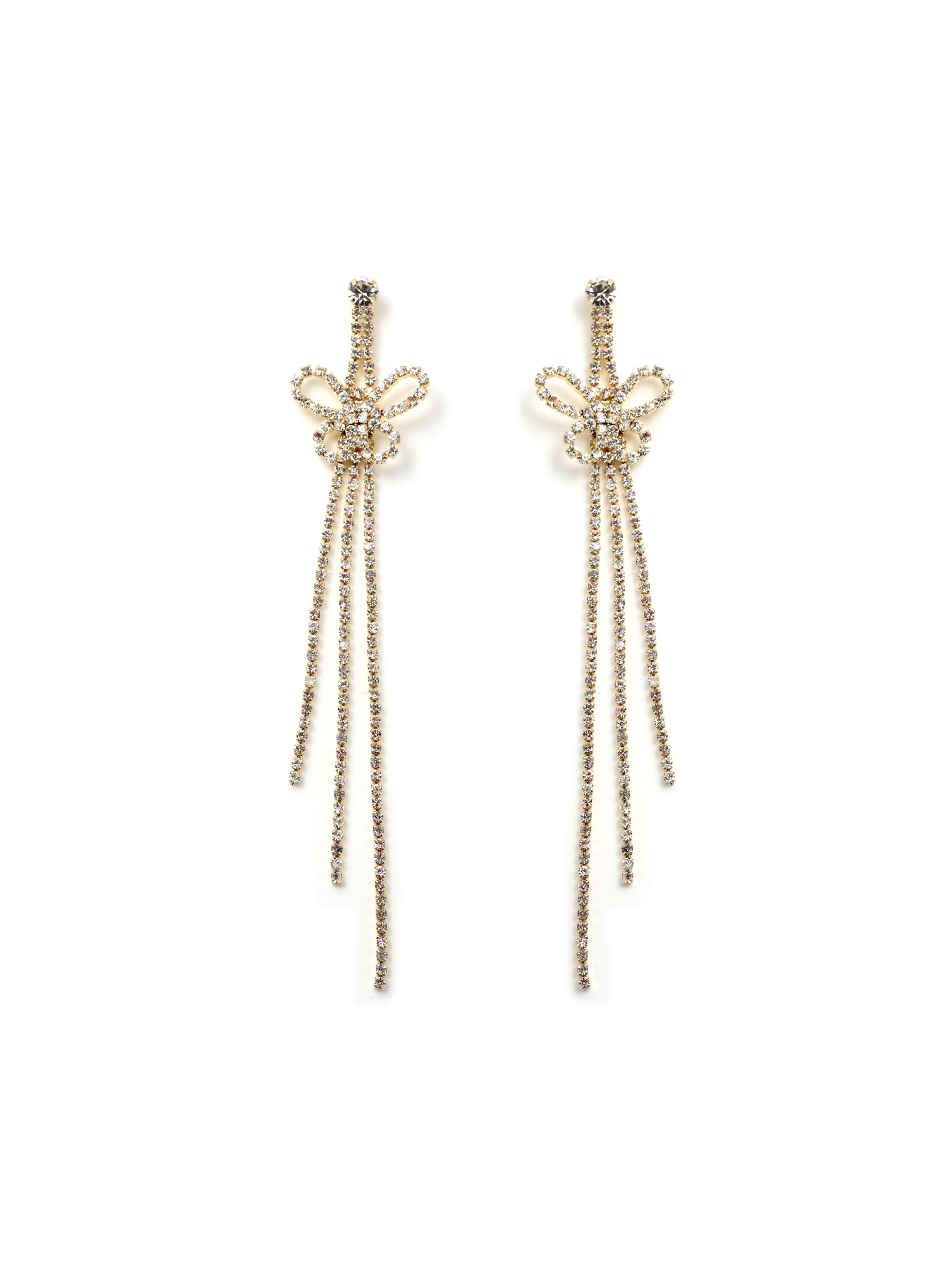 Gold Crystal Rhinestone in Butterfly Shape with 3 Row Dangle Strand Earrings