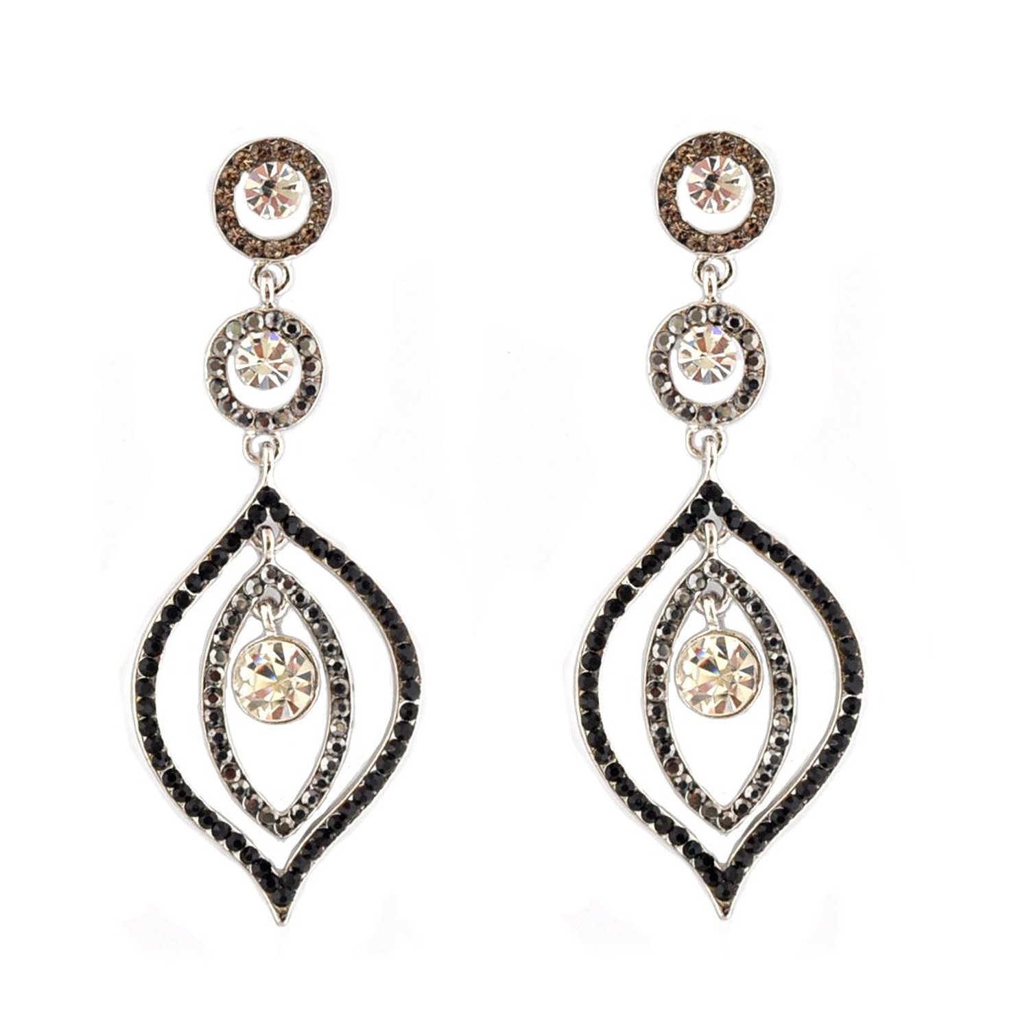 Rhodium Crystal Double Rondelle with Jet Crystal Dangle Earrings