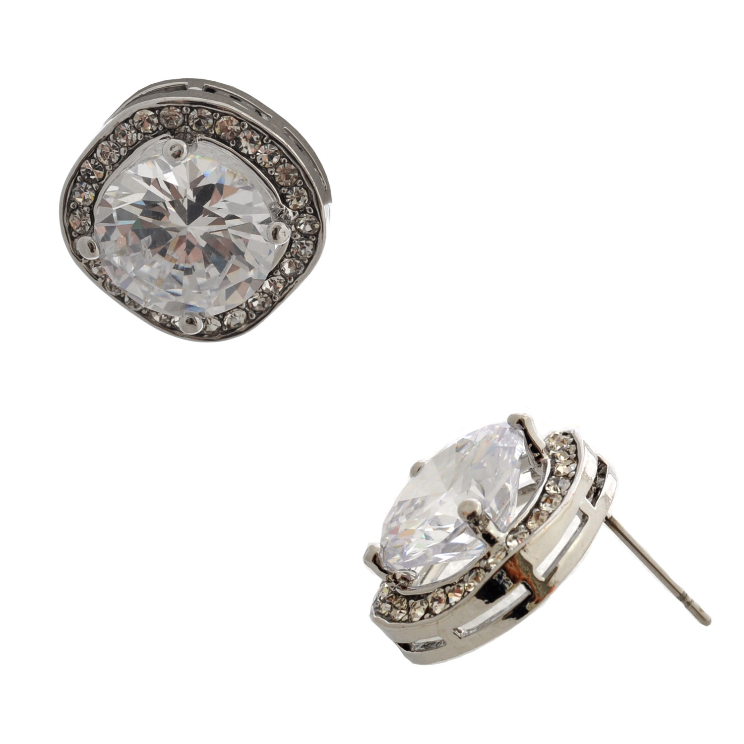 Wedding Earrings Womens Cushion Cut Silver Crystal Stud Earrings